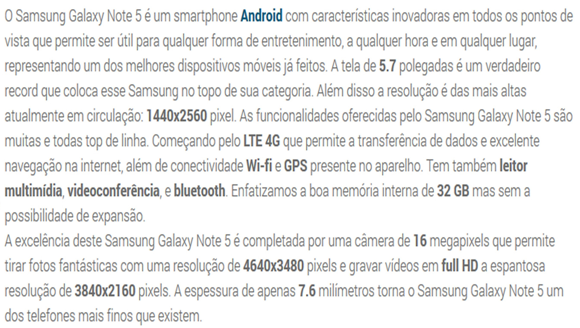 R$ 920,00 - 16MP - OS5.1 - 5.7 Polegadas